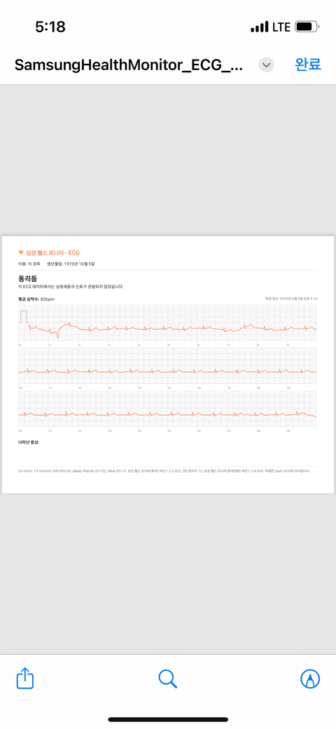 심전도 워치로 그래프 찍어봤는데 정상일까요??