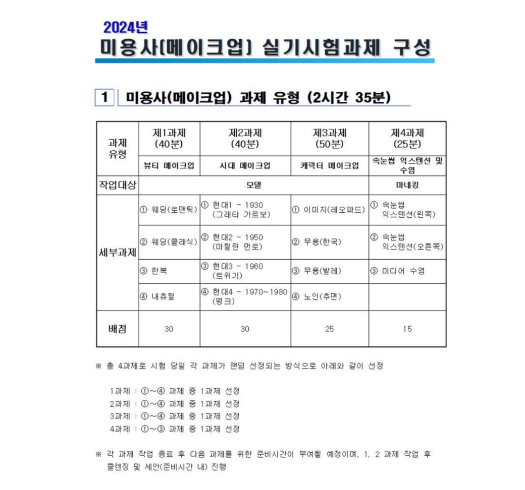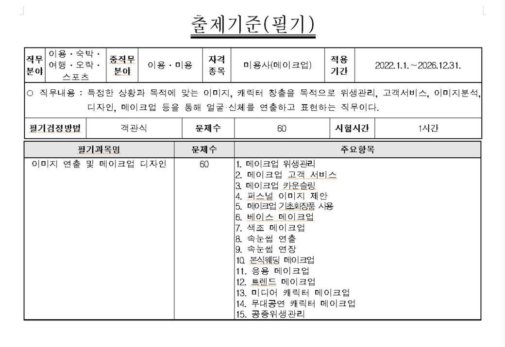 메이크업 자격증 필기,실기 시험 보통 어떤 문제가 나오나요?