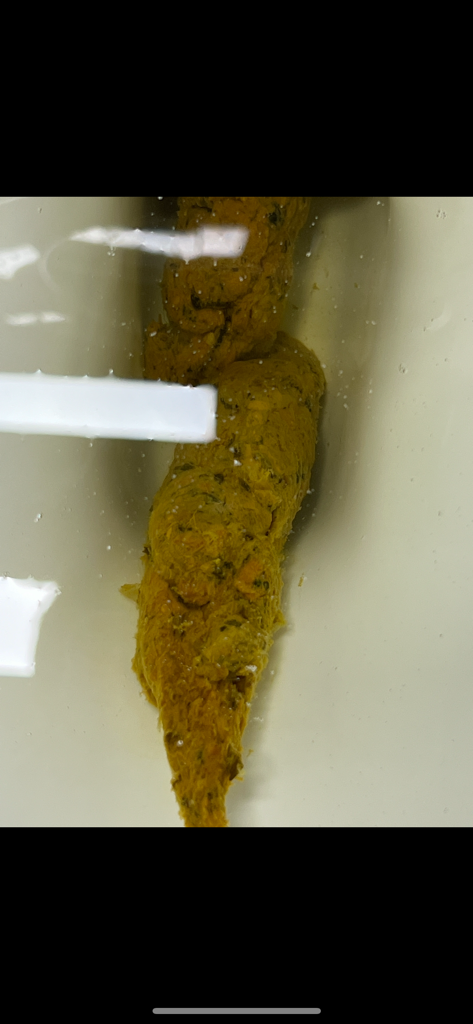 대변은 어떠한 음식ㅁ루을 먹었는지 변이 장에 얼마나 오래 머물렀는지 등 요인에 의해서 색깔이 다 다르게 나타납니다. 사진 속의 대변 소견은 딱히 특별한 이상이 있어 보이지 않습니다.