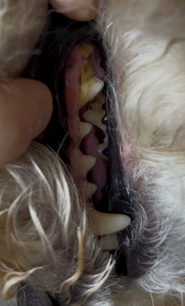 사진에 보이는 것처럼 잇몸에 가까운 부분이 까맣게 되어있는데 저게 충치인가요, 치석인가요? 강아지들은 충치가 잘 안 생긴다고 들어서 여쭤봅니다.