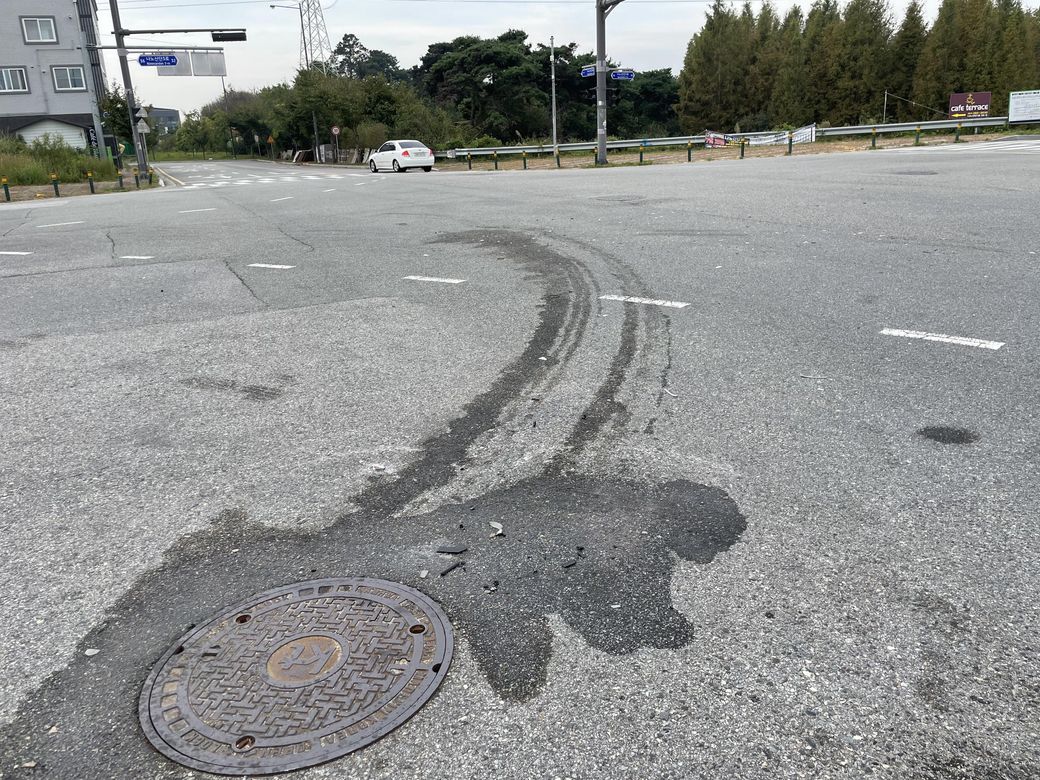 상대방쪽 바닥 노면엔 스키드마크도 존재하지않고요.