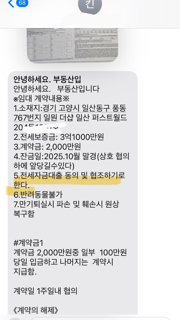 먼저 가계약금 100만원을 저렇게 문자로 구두계약서를 보내고 입금 했는데 (저번주)