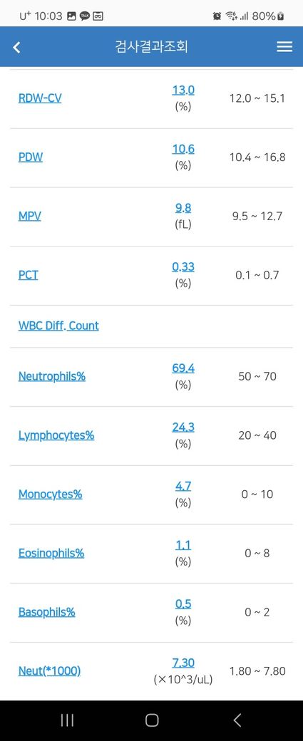 WBC : 8.28 (참고치 4~10.0)