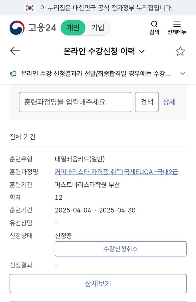 고용24에 직업훈련 온라인수강신청 이력에 신청한게 떴고, 저번주에 학원에서 내일배움카드로 결제를 했어요. 근데 신청 상태에는 계속 신청중이라 표시가 되어있는데 등록이나 신청완료가 된건가요? 아니면 신청완료라고 표시가 되야하나요?