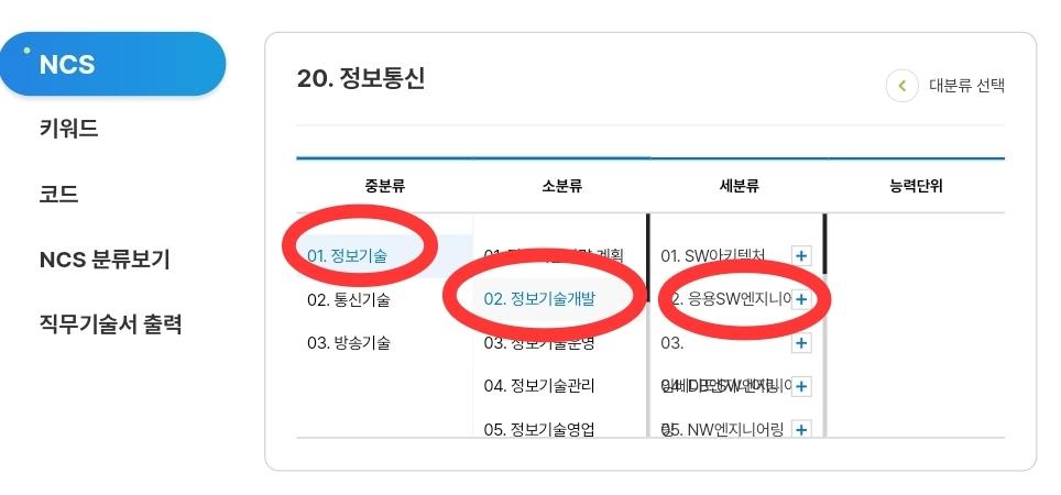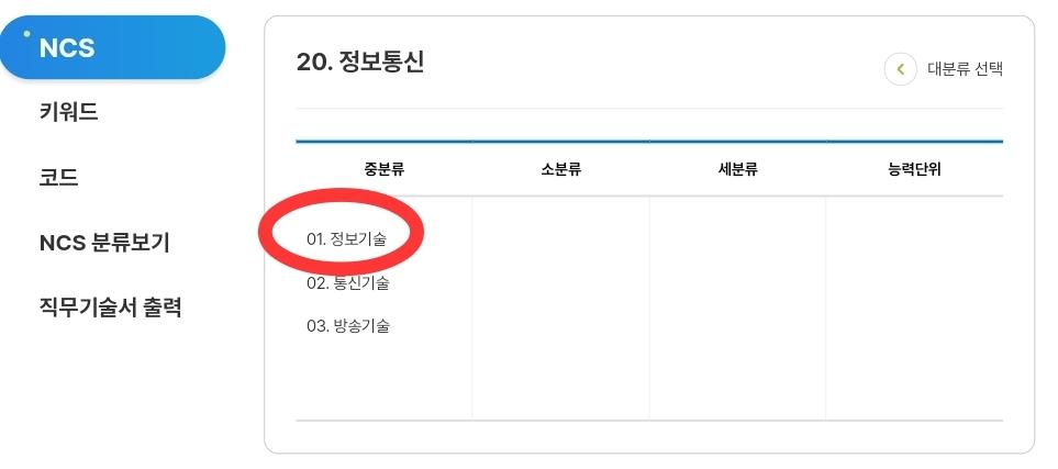 [1단계]: NCS 홈페이지에서 내 강의에 맞는 세분류 찾기