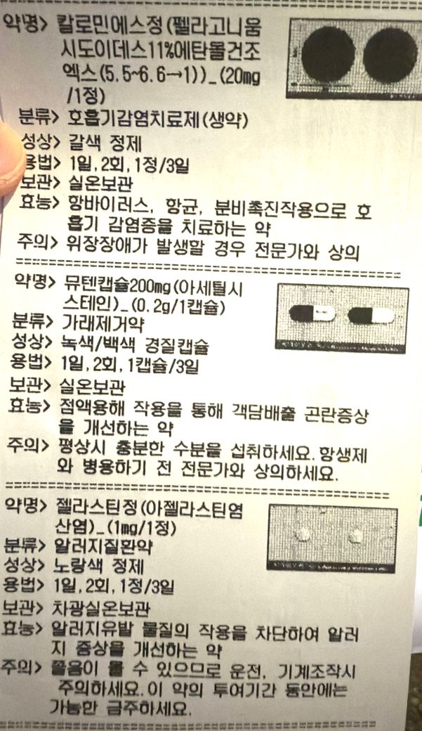 독감 치료를 위해 3일간 위 처방약을 끝까지 다 드시기 바랍니다.