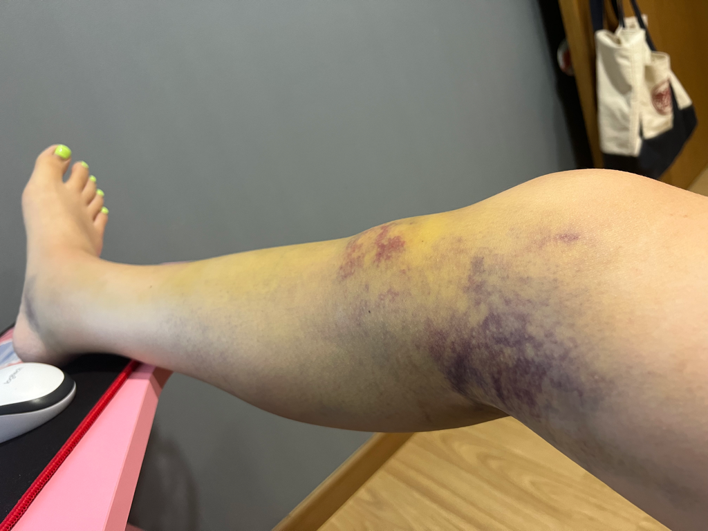 수요일 저녁10시쯤에 다쳐서 2시간후 점점 심하게 붓더니 못 걸어서 응급실가서 엑스레이와 CT촬영 결과 근육이 심하게 부어있고 피가 많이 차있었어요 뼈에는 이상이 없고 추후 2-3일 후에 간혹 미세금이 뒤늦게 발견된다했지만 그럴 일이 드물어 소염제 진통제 받고 나왔는데 5일째 다친 곳 부은건 그대로고 미세하게 살짝 붓기가 가라앉고 거의 그대로에요ㅠ 다리 굽히는거 아예 못해서 활동을 못하고 있습니다..정형외과에서는 시간이 약이라고 하셨는데 침 맞으러 가는게 맞을까요? 너무 부어있는데 맞아도 되나요..? 냉찜질만 하는데 온찜질도 할까요? 벌 쏘인거처럼 땡땡하고 굽히면 무릎쪽더 시큰해요ㅠ 무릎 밑에 빨간쪽이 부어오른 쪽이에요ㅠ