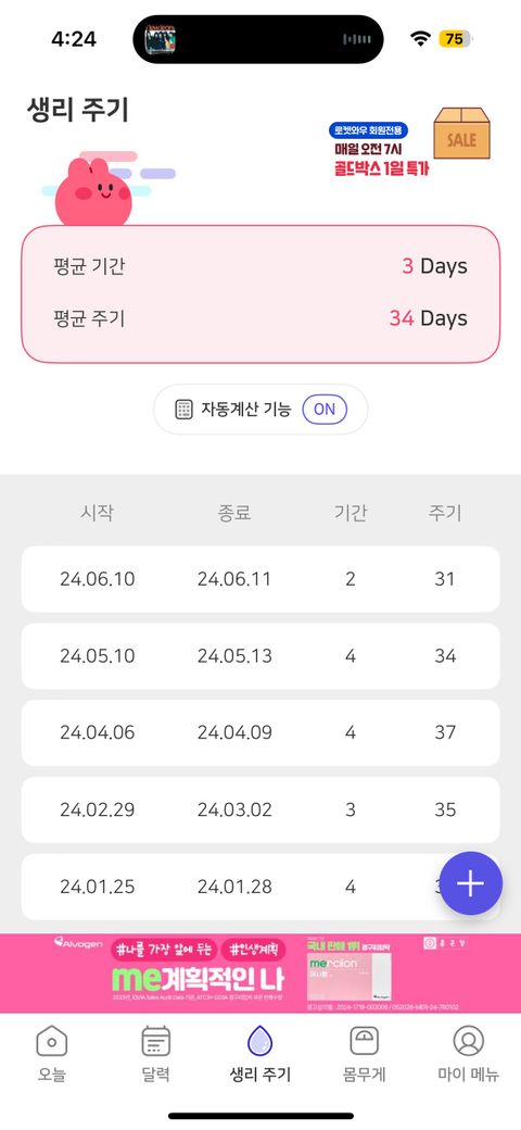 생리 이틀차 멜리안 복용 생리주기 줄어듬