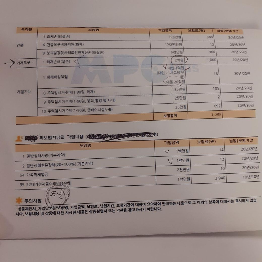 존경하는 선생님들 화재보험 가입제안서 좀 봐주세요
