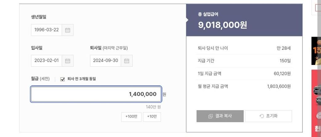 23년2월에 일시작하였고 24년 9월에 통보를받고 그만두게되는데 월급은 140만원입니다.