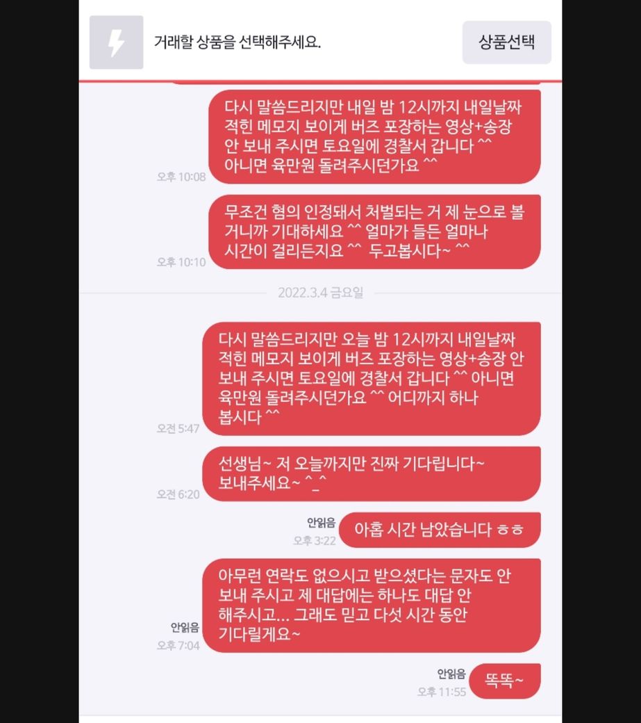 제가 번개장터에서 2022년 3월 3일 19시경 소액 사기를 당했습니다.