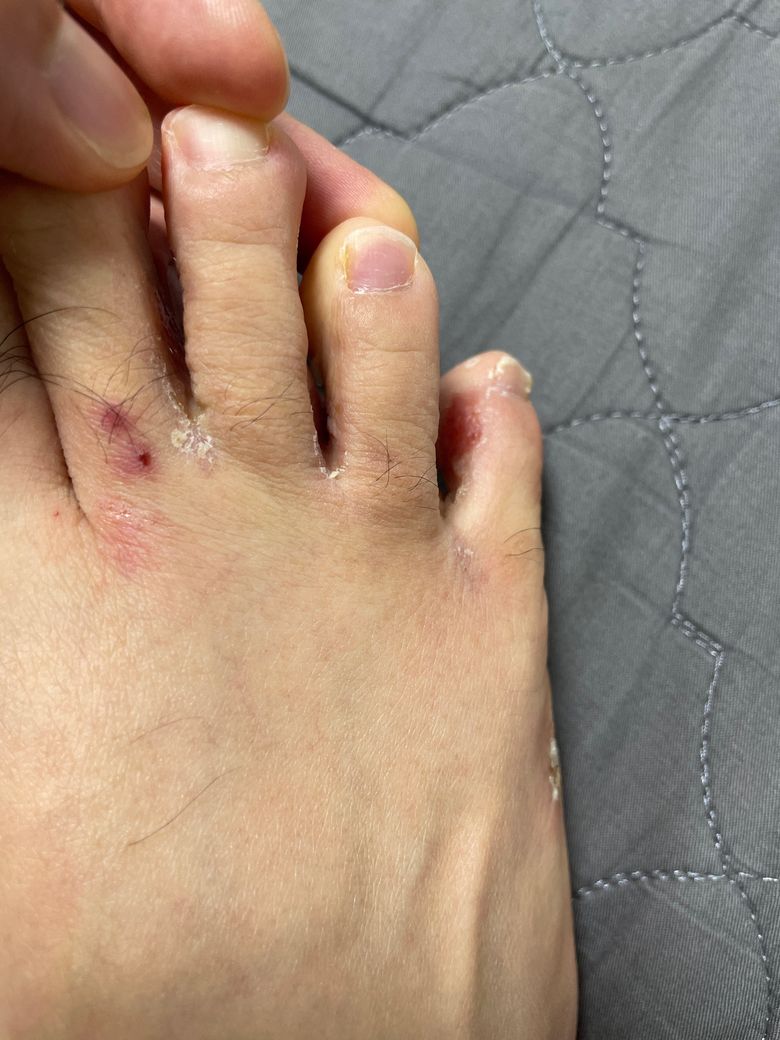 밤에는 부어 오르고 열감이 심해서 계속 중간에 잠을 설칩니다. 회사에서는 양말도 진물에 젖어있을 정도에요.