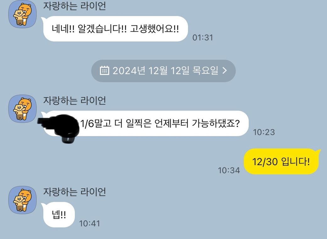 저는 2024.3.25 근무를 시작하여 학생이여서 2024.12.08일부터 2024.12.28일까지 개인사정으로 쉬고