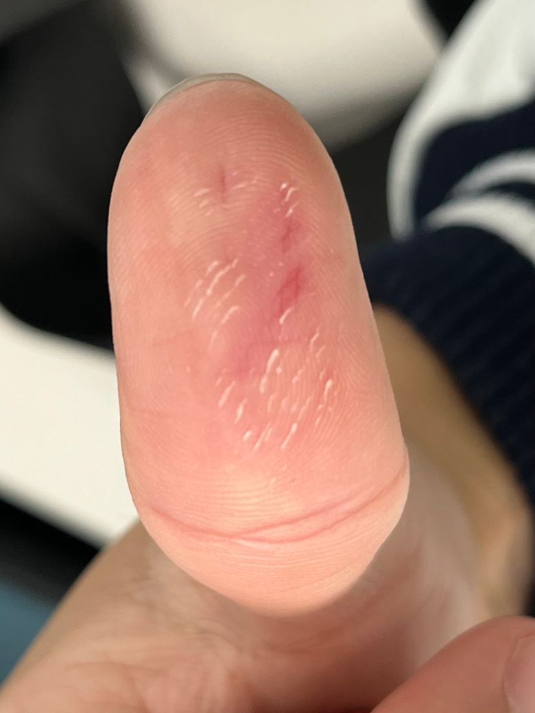 사진을 봤을 때는 뭔가 마찰자극이 있었을 것이라 추정됩니다.