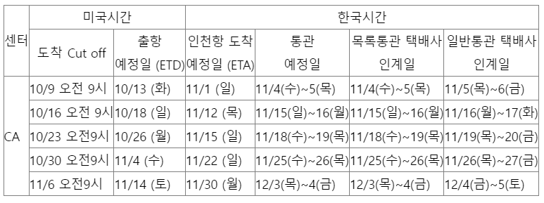 다만, 해당 시간에 대한 표기방법은 약간 차이가 있을 수 있으니 포워딩업체 선정 후 다시한번 확인하는 것이 좋을 것입니다.