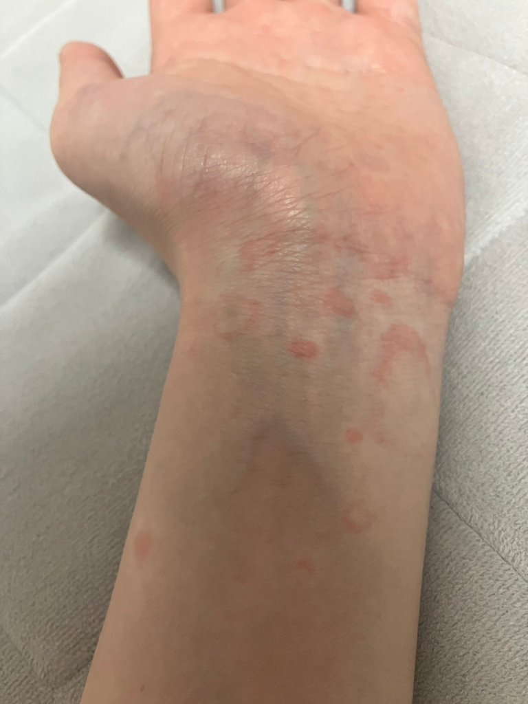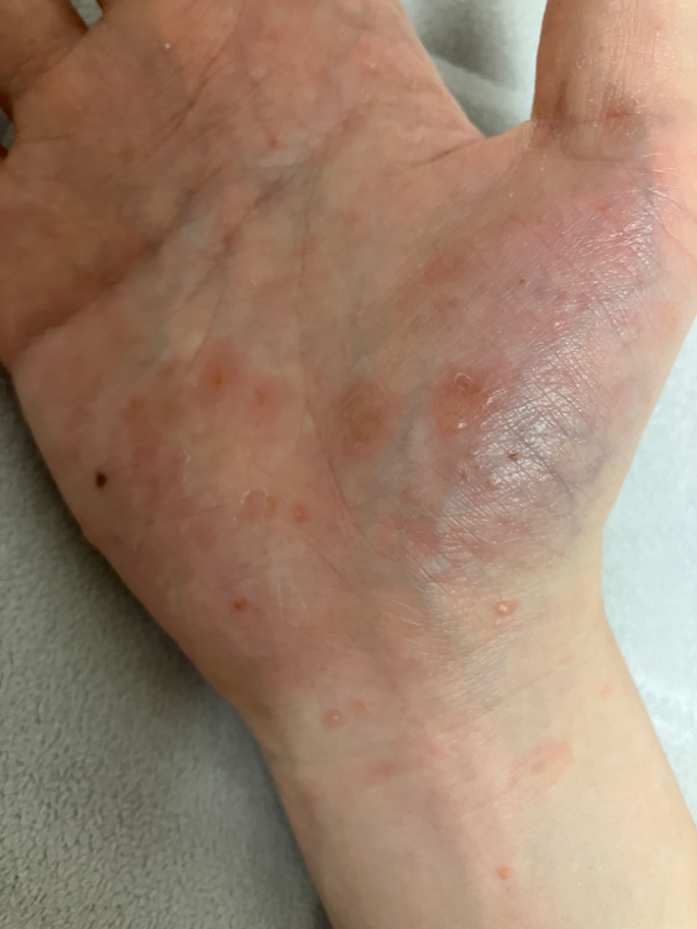손목, 손바닥, 손등에 원인을 알 수 없는 수포와 홍반은 여러 가지 원인이 있을 수 있습니다.