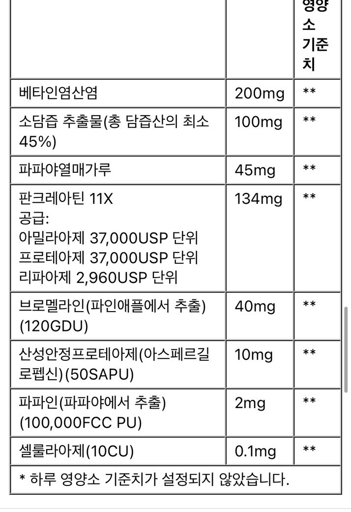 어린 아이들은 위장관 기능이 나빠지기 쉽지않고 나이에 맞지않는 과량의 소화효소에 의해서 공격받을수 있으니 먹이지마세요.
