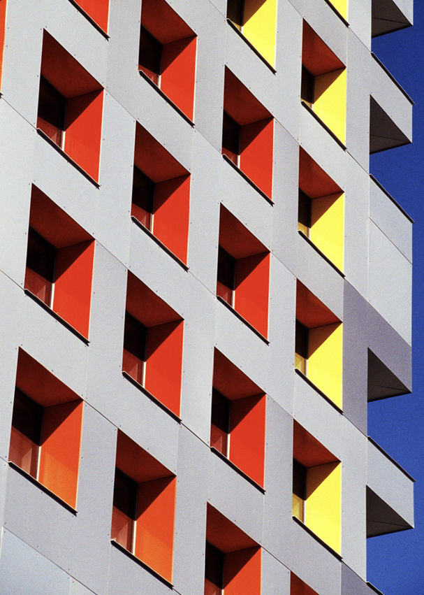 즉, 노르덴슨의 구조도를 반영해 색을 무작위로 칠한 것이 아니라, 각각의 철근에 서로 다른 색을 입혀 건물의 구조적 힘을 표현한 것입니다.