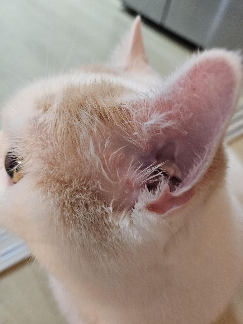 저희집 고양이 귀좀 봐주세요~왼쪽귀를 자꾸 간지러운지 자기손톱으로 계속 긁어서 사진처럼 벌겋게 되었는데 무엇때문에 그럴까요? 벌레가물어 그런건지 바이러스인지 오늘 새벽부터 갑자기 저렇게 긁네여ㅠ