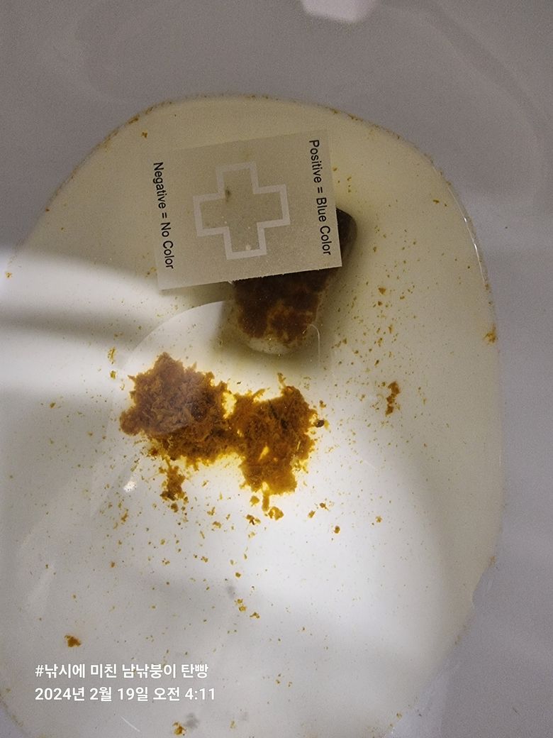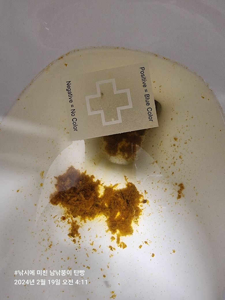 양성이라면 푸른빛이 돌아야하는데 색의 변화가 전혀 없습니다.