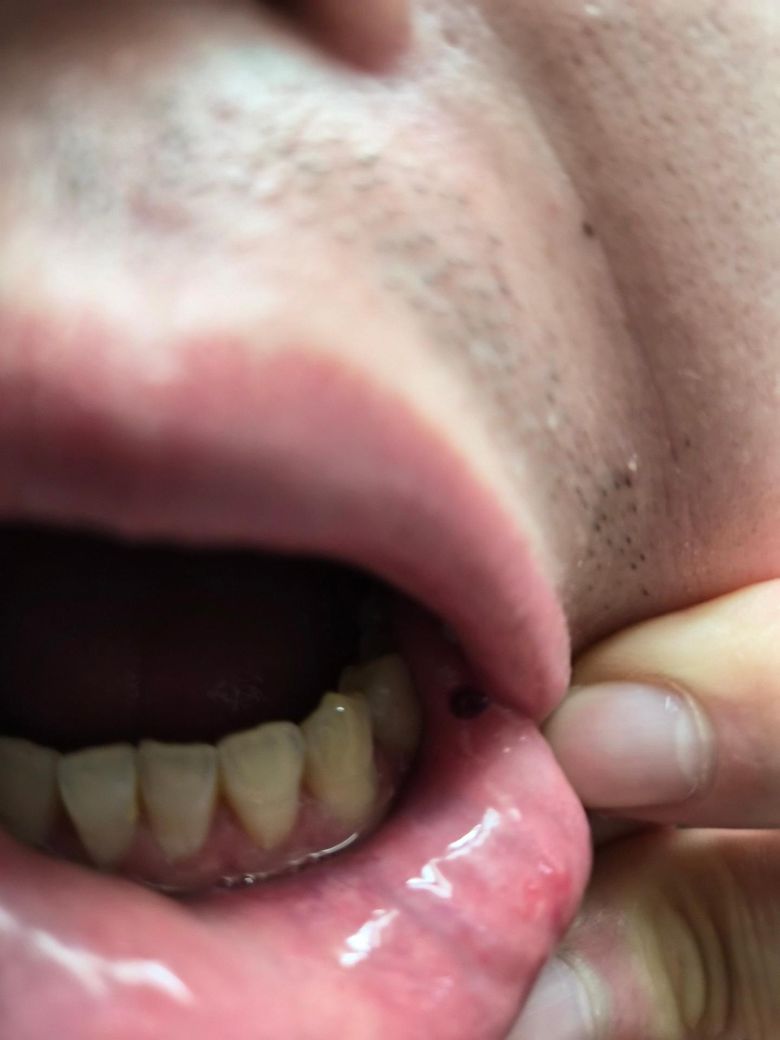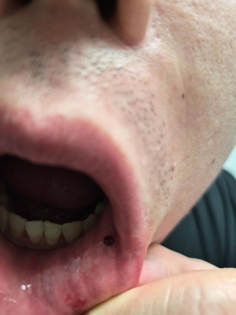 올려주신 사진에서 병변이 잘 확인되진 않으나 치아로 점막을 씹으며 발생한 상처의 가능성이 추정됩니다.