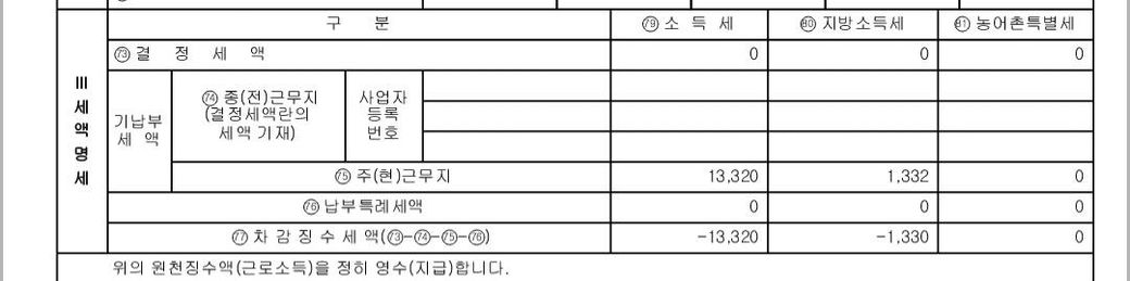 회사에서 연말정산하고 근로소득원천징수영수증을 받았는데