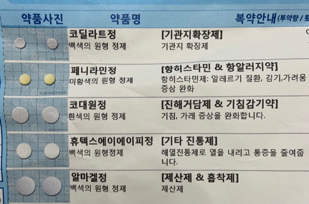 코달라트정 / 페니라민정 / 코대원정 / 휴텍스에이에이피정 / 알마겔정