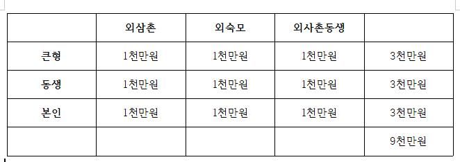 외삼촌에게 약 9천만원 채무가 있으셨습니다