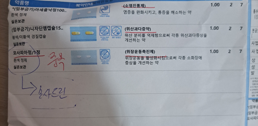 만약 꼭 드셔야 한다면 아세클낙과 시간간격을 4-5시간 이상 두시고 드시기 바랍니다.