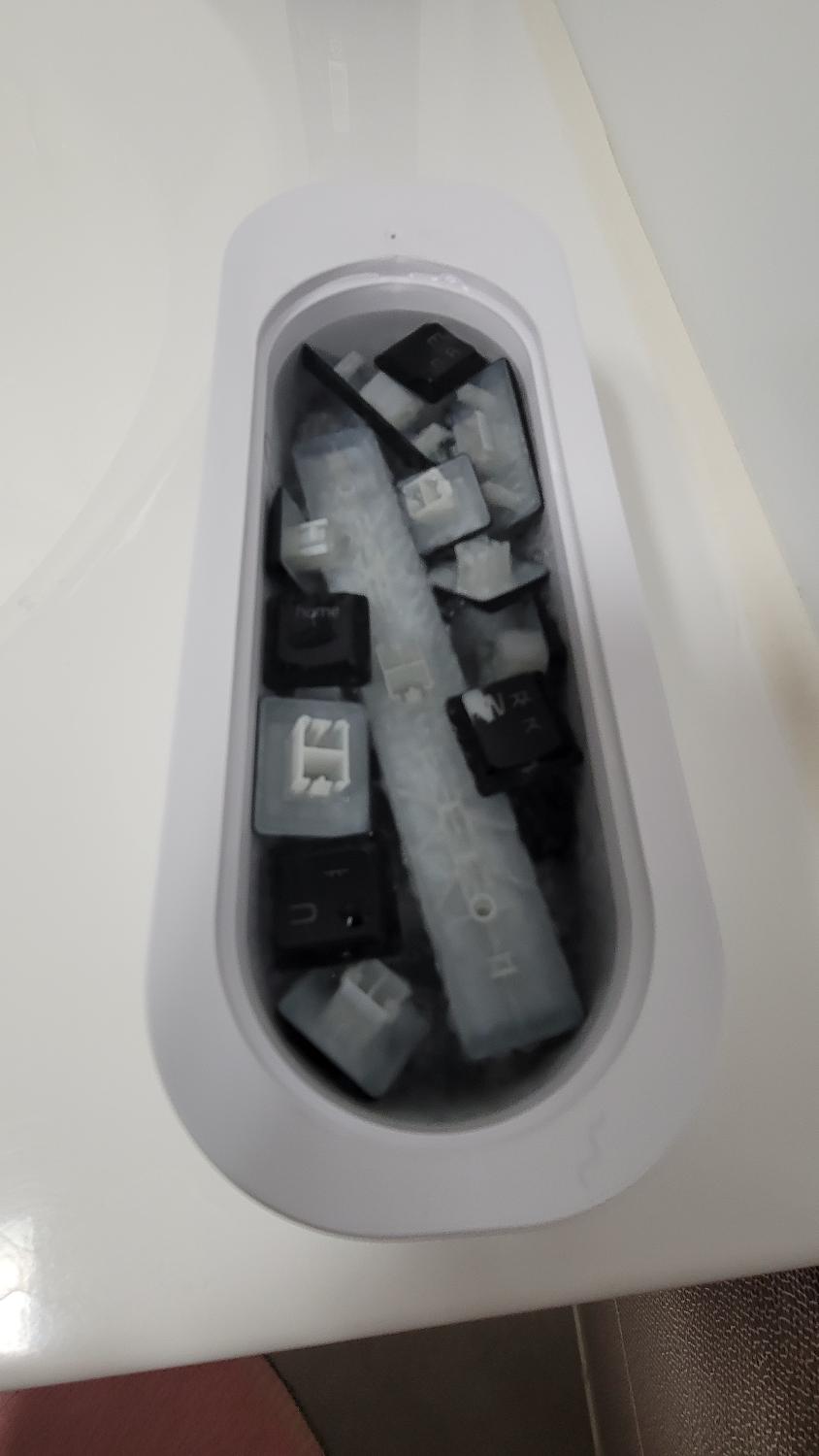 키캡은 따로 물청소로 기름때를 없애고 3시간 이상 말린후에 다시 끼우시면 됩니다