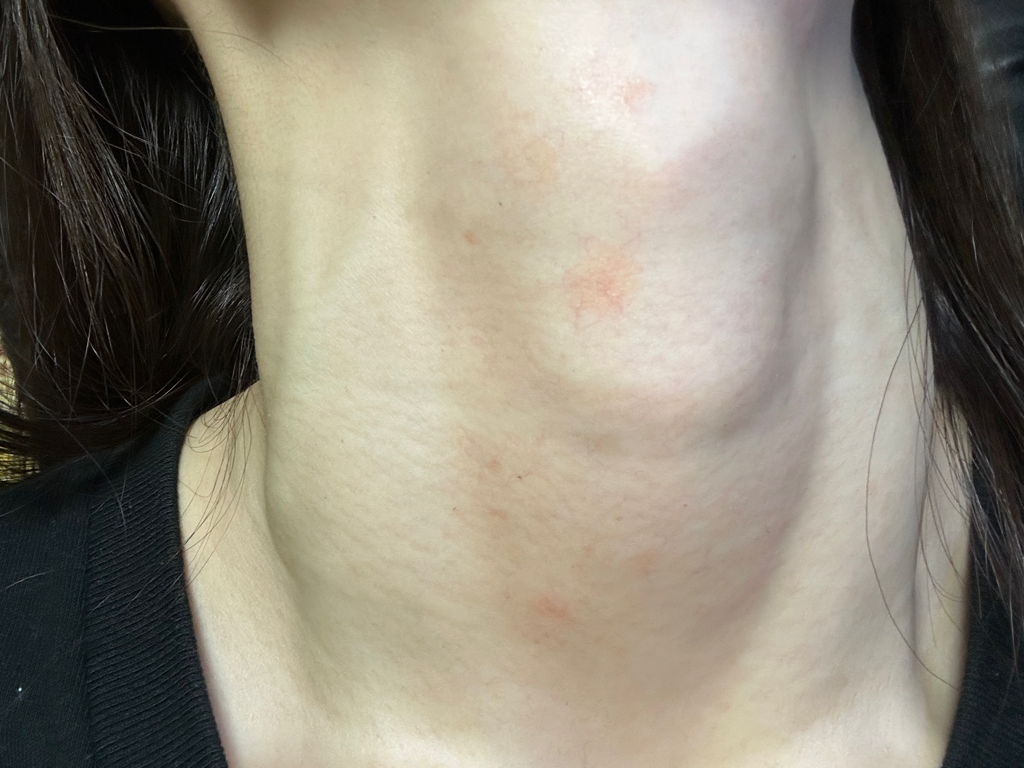 사진에 보이는 것 처럼 목만 이런게 아니라 턱 밑에도 살짝 두드러기가 보여서 피부가 건조해서 생긴건지, 쇠독인건지 모르겠네요. 혹시 몰라 차고 있던 목걸이는 뺀 상태 입니다. 뭐때문에 이런걸까요ㅠㅠ?