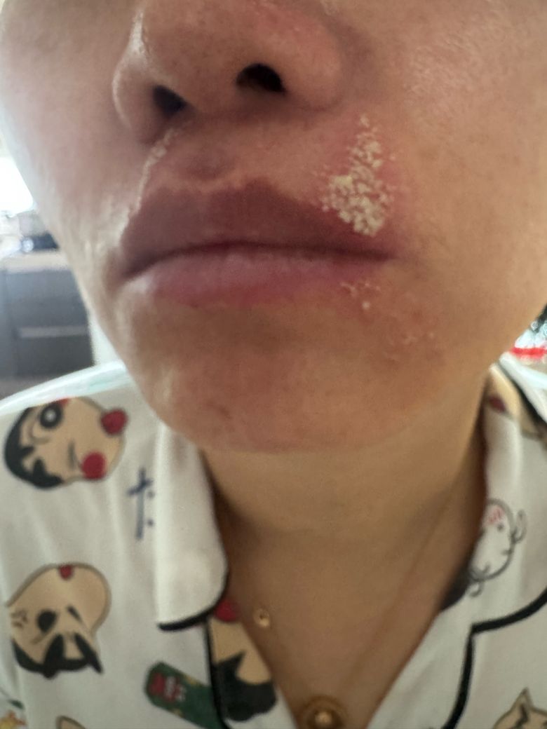 단순 포진의 가능성이 생각되나 피부 병변의 경우 육안적 소견이 중요하므로 다른 감염성 피부 질환과 감별 및 치료를 위해 인근 피부과를 서둘러 방문할 것을 권합니다.