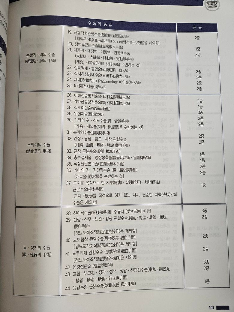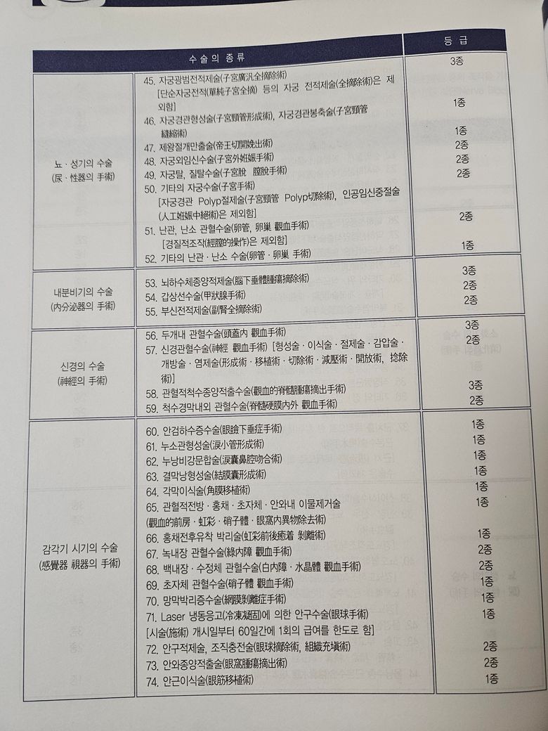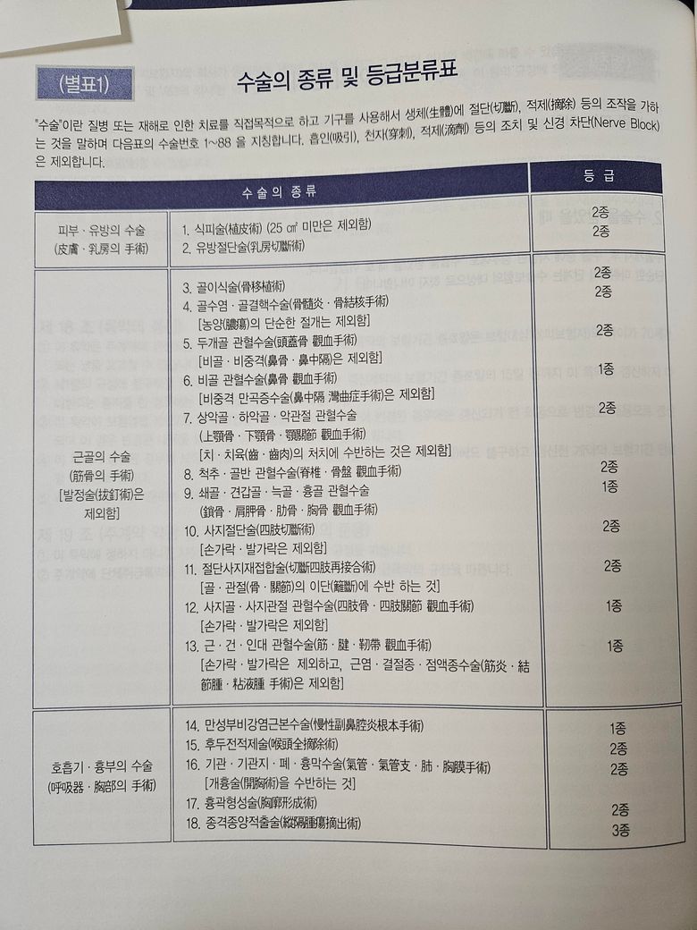 보험약관에서 수술종류 및 등급분류표를 봤는데