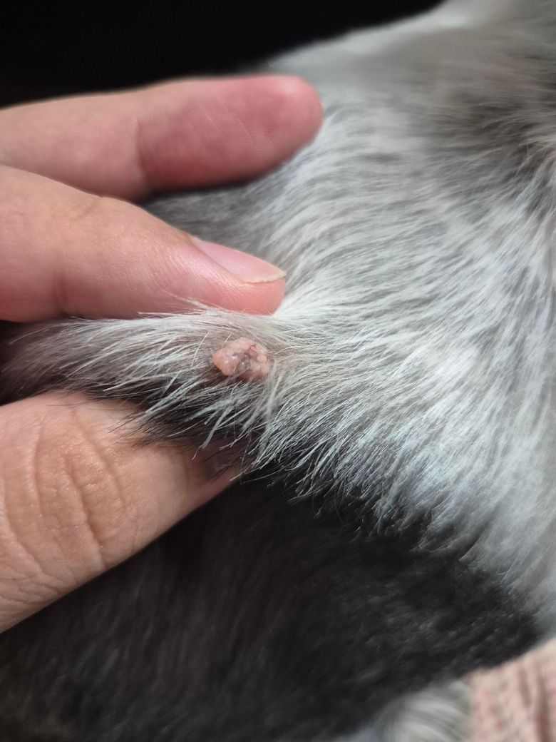 안녕하세요. 박창민 수의사입니다. 사진으로 평가는 불가하지만, 큰 문제는 없습니다. 다만, 크기가 점점 커지거나 색이 변하게 되면, 제거 해주시는게 좋습니다. 동물 병원에 다시 방문하시면 될 거 같습니다. 감사합니다.