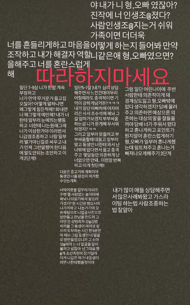 초4동생의 여친 고1이 동생이랑 밖에서 싸우고 동생인스타로 보낸 사진을봤는데 해석해주실분?
