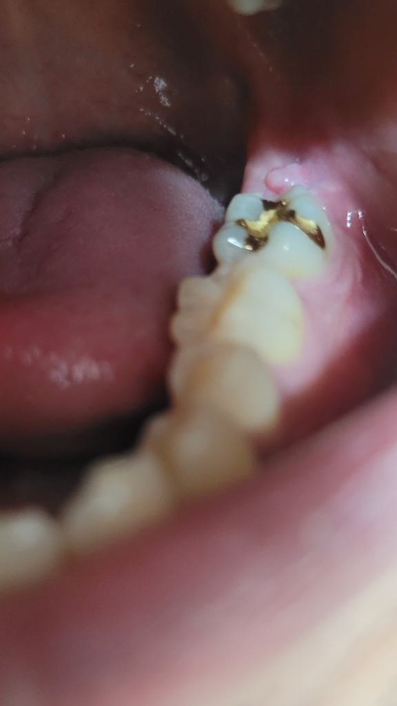 잇몸이 과증식되서 그런겁니다. 크게 문제가 되진 않지만, 불편하시다면 치과에 가셔서 마취후 저부위만 제거 하시면됩니다.