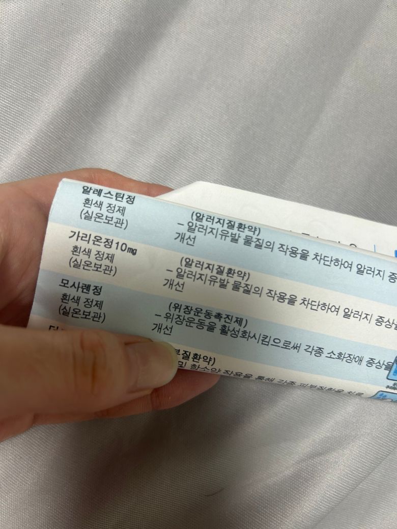 엄지손가락에 가려져 있는 약은 정확히 보이지 않네요.