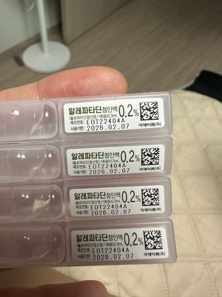 문의하신 점안액은 알레르기성 결막염에 대해 사용 가능한 항히스타민제로 국소적으로 작용하므로 태아에게 영향은 미비할 것으로 생각되나 임부를 대상으로 이뤄진 적절하고 잘 관리된 실험이 없기 때문에 안과 진료 후 사용할 것을 권합니다.