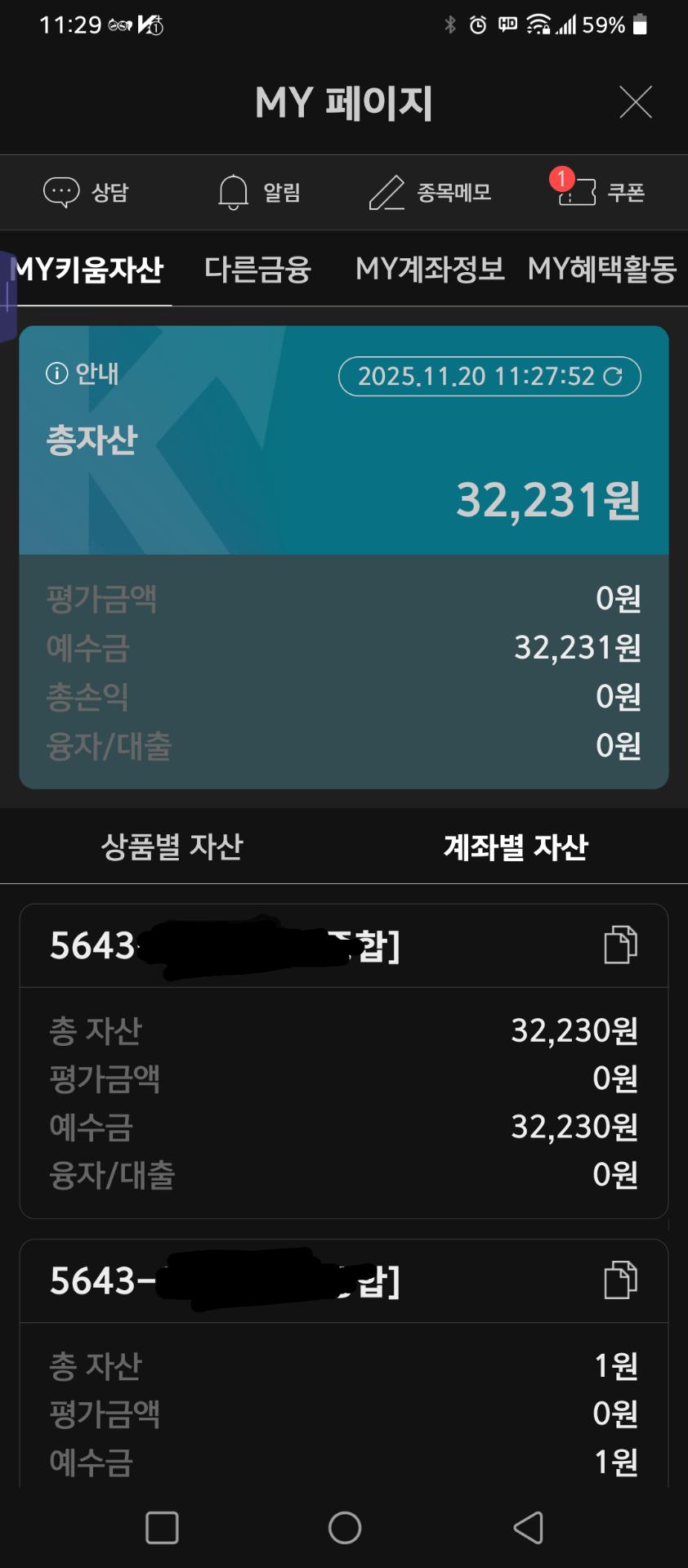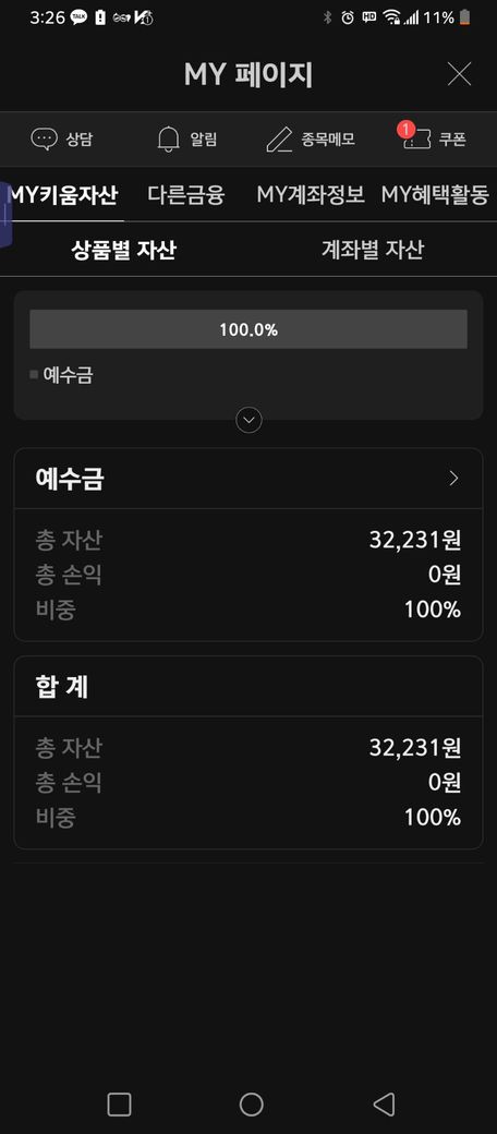 키움증권에 오랜만에 접속해보니 마이키움자산 메뉴에 총자산 예수금에 32231원 조회되네요