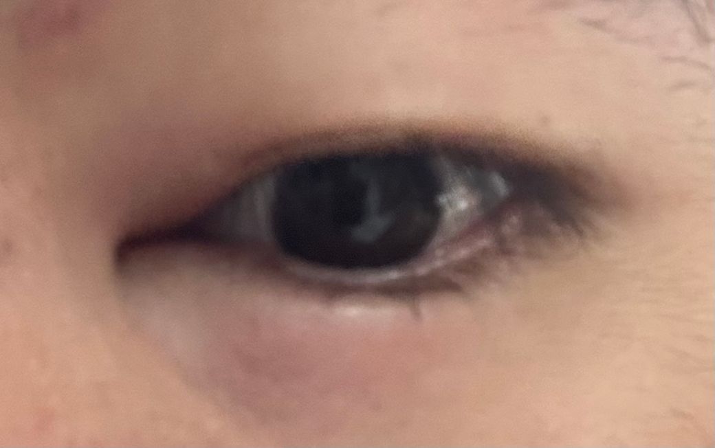 세수하고 나오니 왼쪽눈에 이물감이 들어 확인했습니다