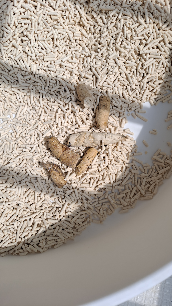 하지만 내부 색은 정상이며, 겉은 흰색이네요. 묽은 변의 경우 화장실 모래가루가 붙어서 코팅되어 보일 수 있겠습니다만, 자세한 것은 변을 들고 병원에 내원하여 분변 검사를 받아보시는 것을 추천드립니다.