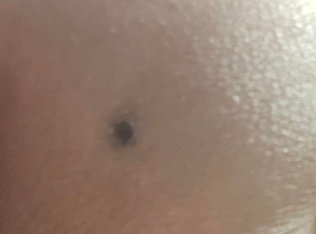처음에는 살색에 딱지만 생겼는데 딱지를 떼고 반복하다보니 검정색이 됐어요