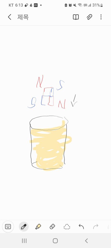 전류가 흐르기 위해서는 전위차가 발생해야 하는데 그림 속에는 전지를 비롯한 전위차를 발생시킬 수 있는 어떤 에너지원도 보이지 않기 때문입니다. N과 S는 자석의 극을 나타내는 것으로 보이지만 자기장은 전류를 직접 발생시키지는 않습니다