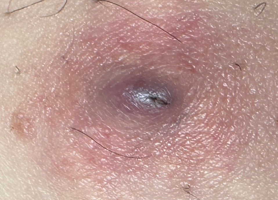 모낭염은 초기 1~2일 동안 색이 더 진해지거나 붉어 보이는 변화가 흔합니다. 염증이 피부 깊숙이 있을 때는 붉→보라→갈색으로 잠시 진해지는 과정을 거치는 경우도 있습니다.