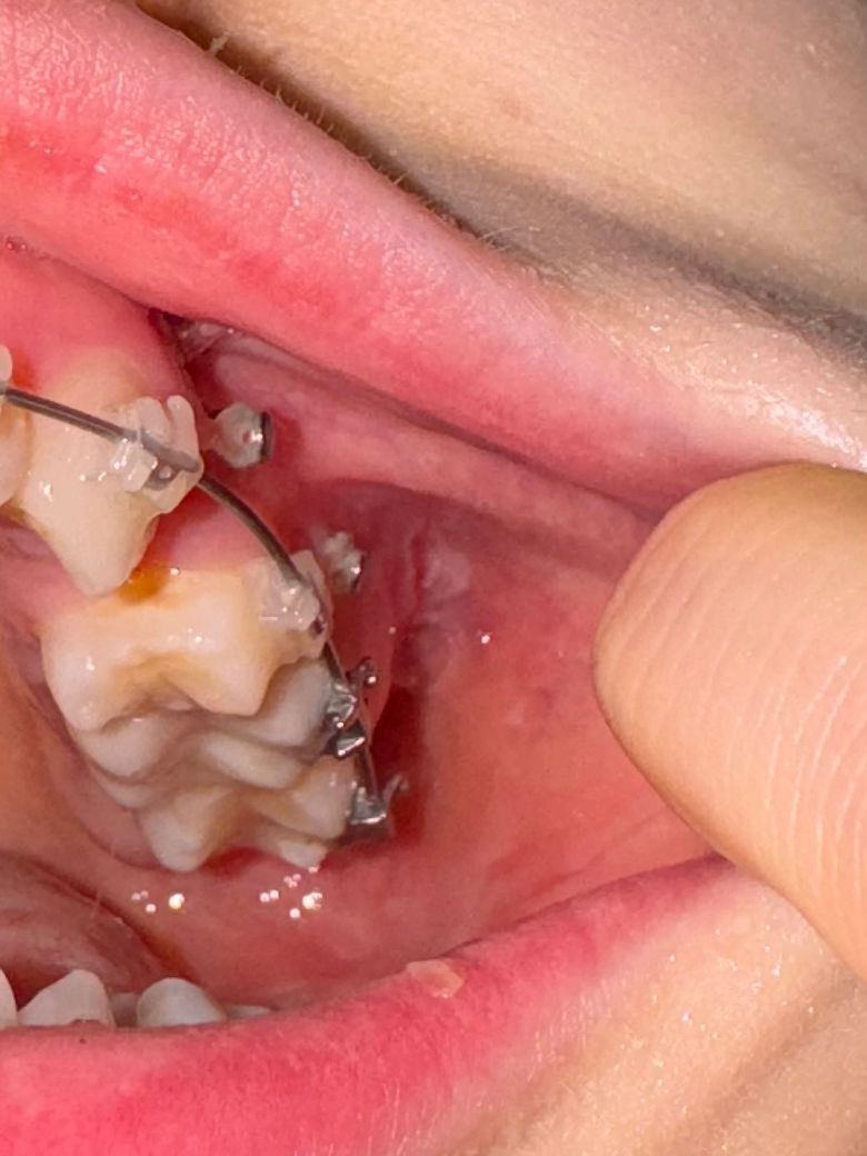 교정장치로 인해 상처가 난 것이 맞을 것 같습니다 교정 진행중인 치과가서 장치에 대해 좀 부드러운 재료를 달아달라고 하세요