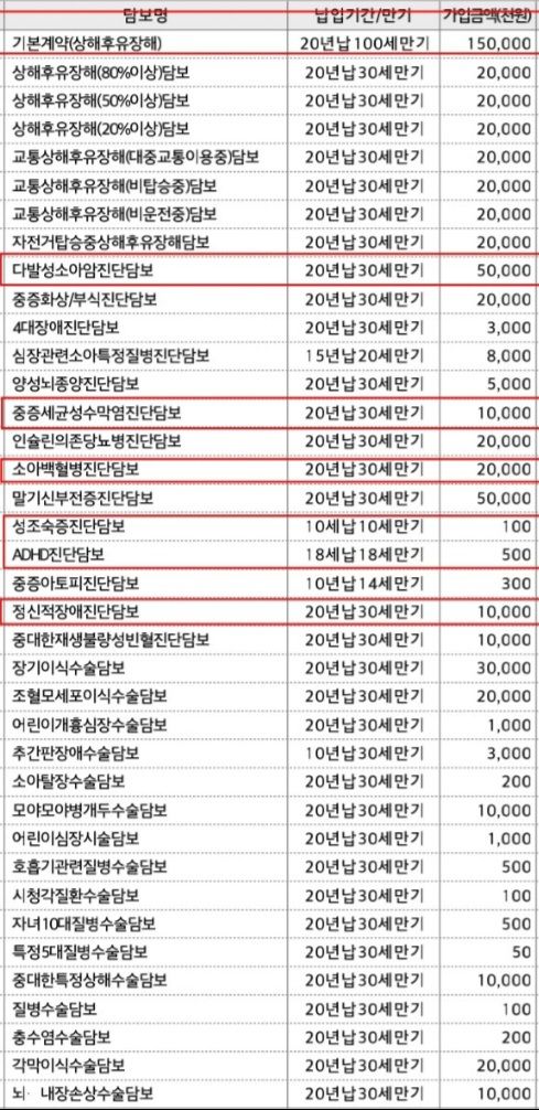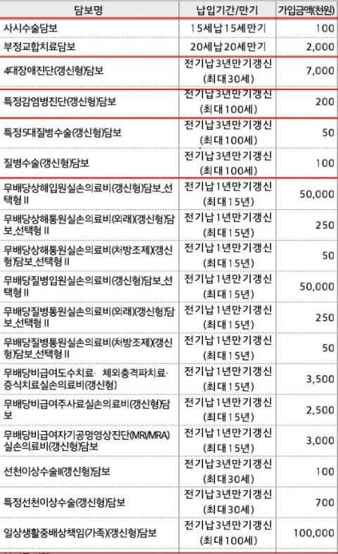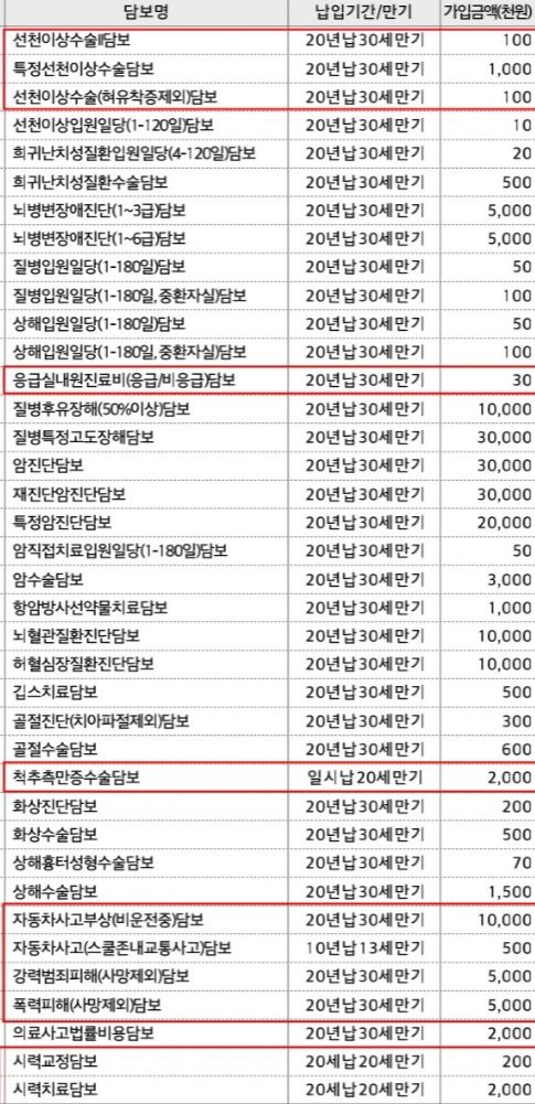 3. (변경시) 현재 태아보험에서 남길거와 뺄거 봐주세요. (태아보험든 담당자분이 빨간부분만 빼고 다 변경하시라고 했어요 )