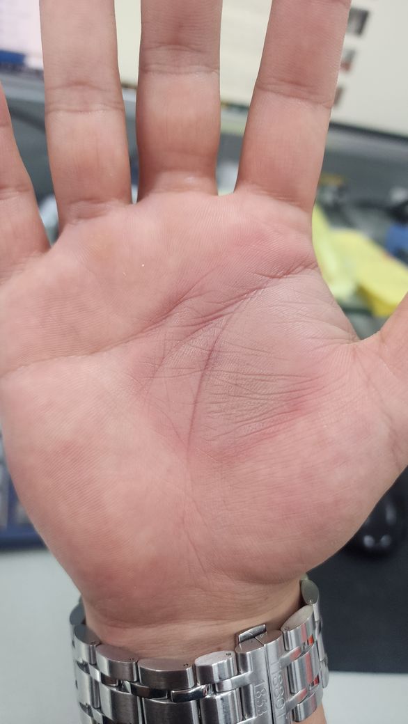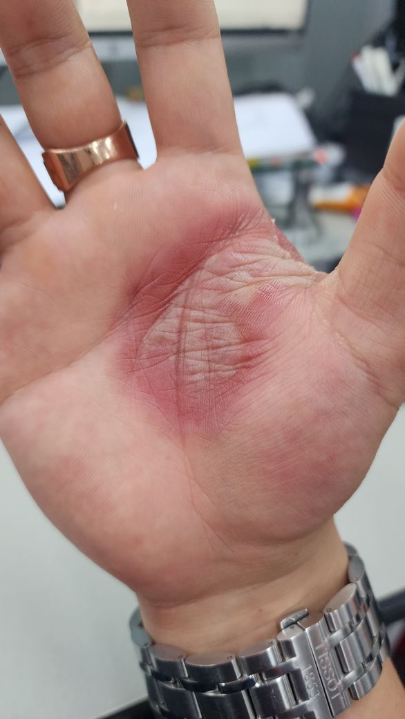 손바닥은 피부 빨개지면서 물집생기고 통증이 좀있구요