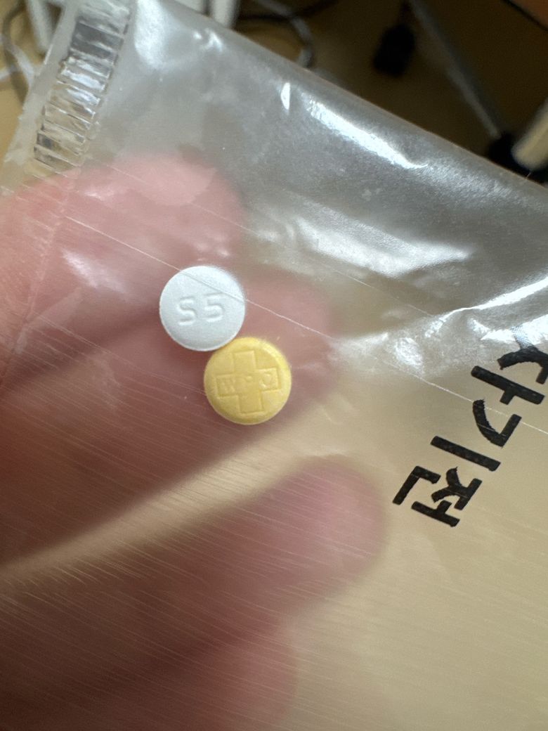 자기전먹는약 노란색알약은 십자가 안에 wpc라고써있구요