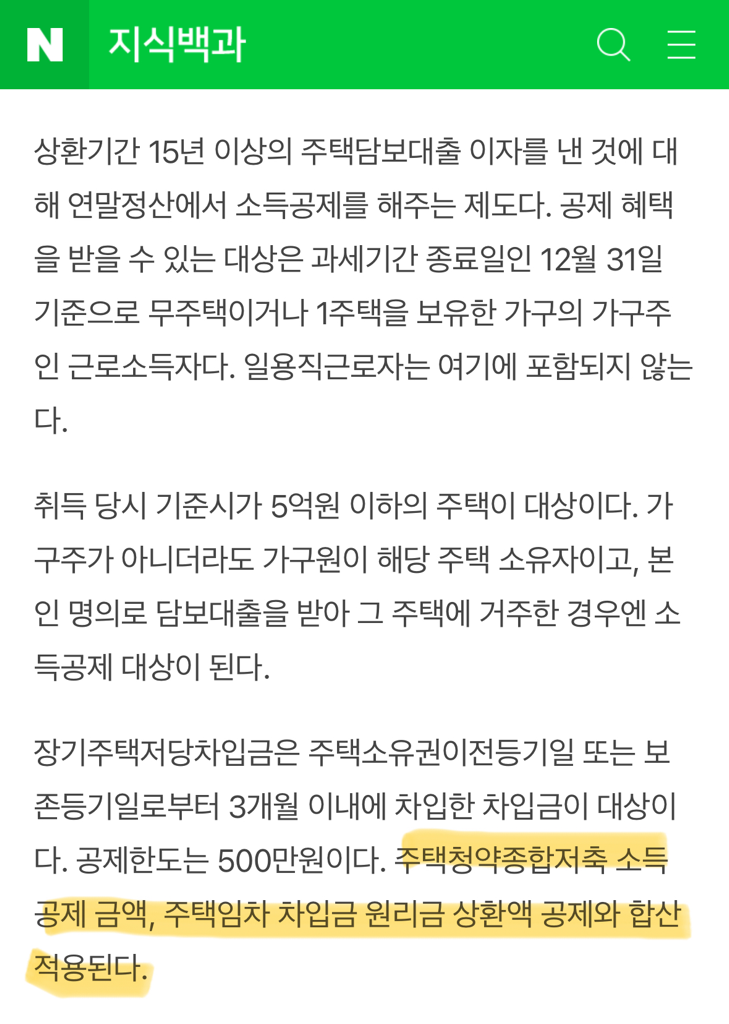 장기주택저당차입금 이자상환액 소득공제에 대하여 찾아보니, '주택청약종합저축 소득공제금액 ... 와 합산 적용된다' 라고 되어 있는데,