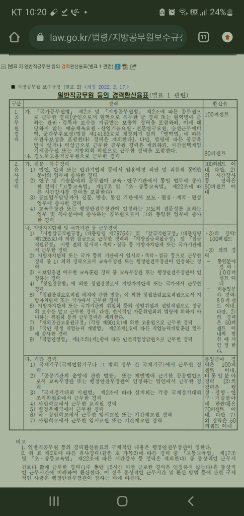(위 사진은 공무원 경력 환산표)